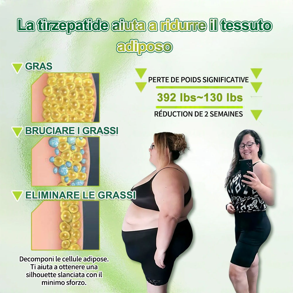- Tirzepatide (GLP-1): Controlla lโappetito, regola la glicemia e supporta la perdita di peso.